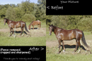 clutter in the background, removing a halter, completely changing the
